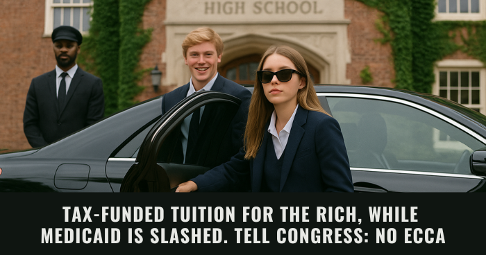 Even as it slashes Medicaid for low-income kids and seniors, Congress is trying to sneak in a tax-payer funded private school tuition plan for the rich. Write your letter now.