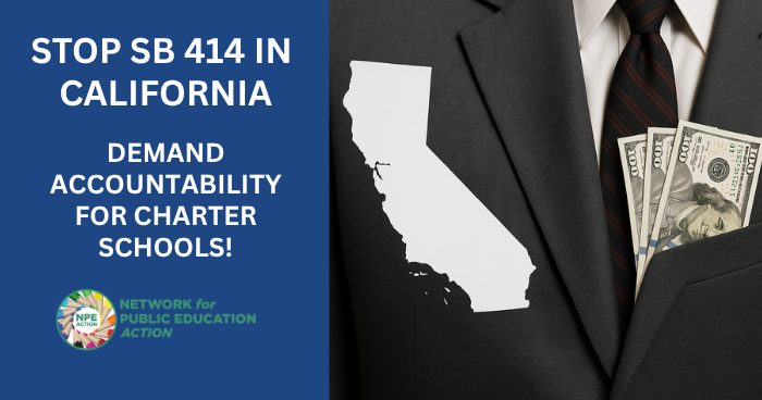 SB 414, a dangerous bill, has passed the California Senate and heads to the Assembly Education Committee on July 16. It must be stopped. If enacted, it would give charter schools tort liability protection, shielding them from legal consequences, even in cases of fraud or mismanagement.